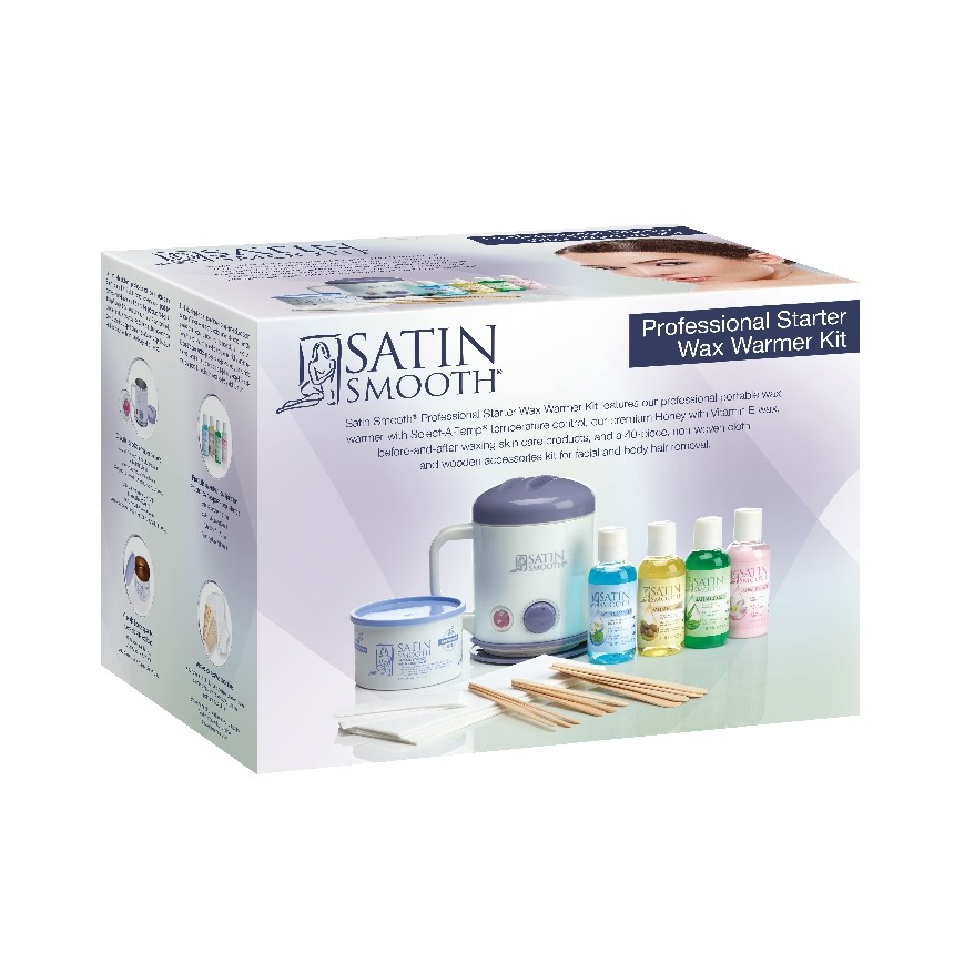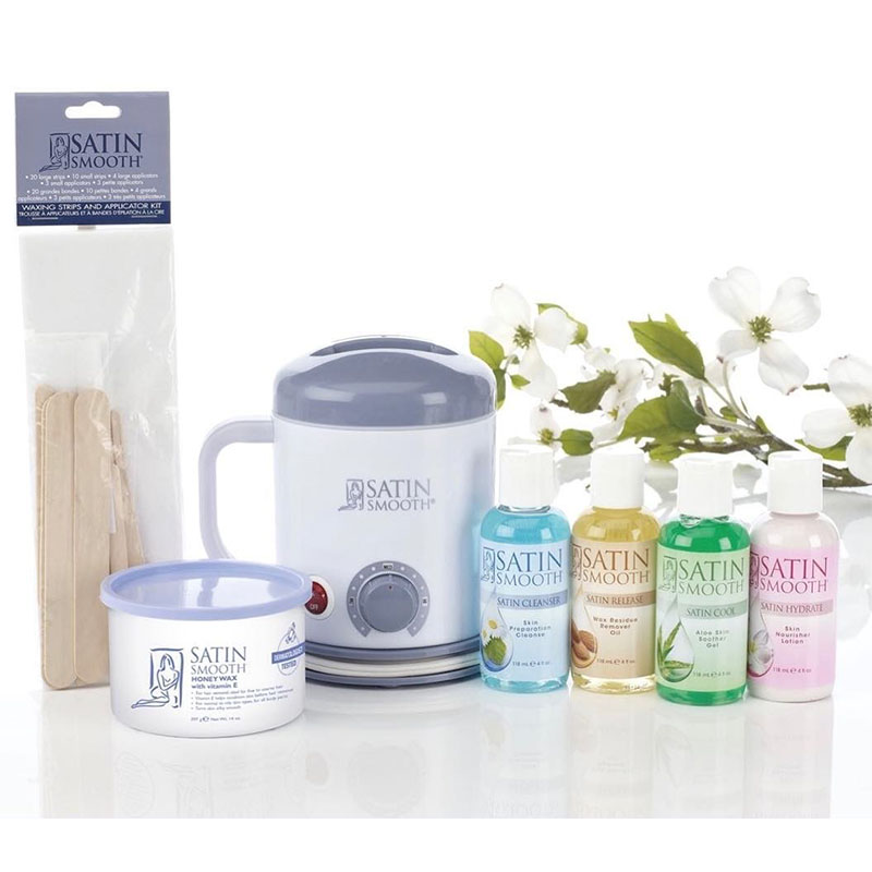 套組包含有入門款熱蠟機、40項產品:多種臉部及身體的除毛用品