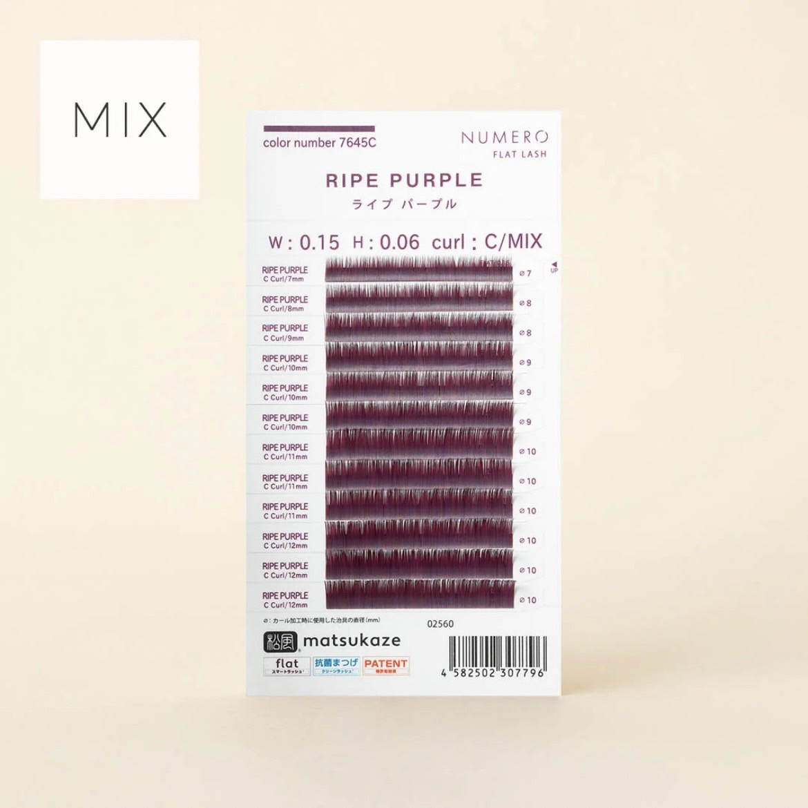 厚度0.06mm/橫幅0.15的扁毛形狀傳達出的輕盈感、柔順感、舒適感,為配合原生睫毛的直向橢圓設計,針對因嫁接睫毛容易脫落而困擾的人為對象,加強了嫁接維持度。