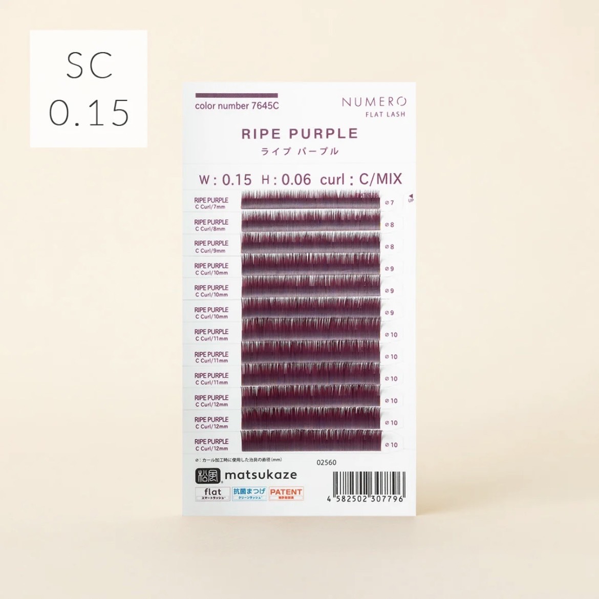 厚度0.06mm/橫幅0.15的扁毛形狀傳達出的輕盈感、柔順感、舒適感,為配合原生睫毛的直向橢圓設計,針對因嫁接睫毛容易脫落而困擾的人為對象,加強了嫁接維持度。